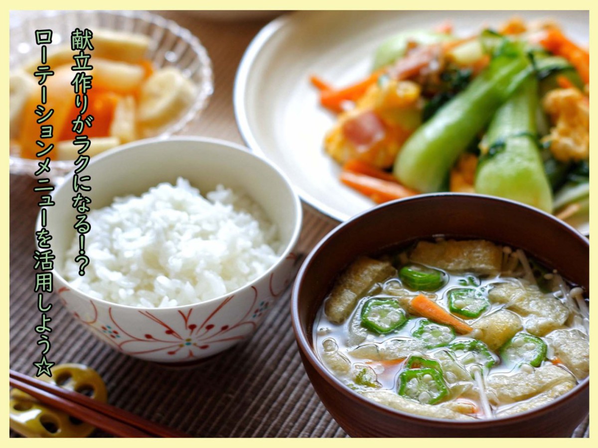献立をあらかじめ決めておくローテーションのメリットは、日々の食事の内容を事前に決めておくことで「考える時間を減らす」・「無駄な購入を減らす」などです。