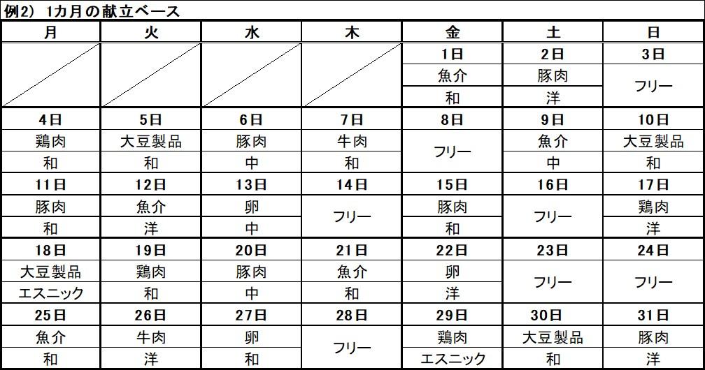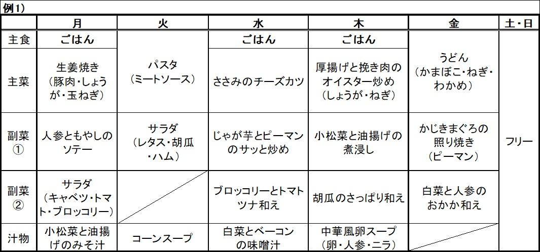 例1は、すべての献立を組み込んだものです。